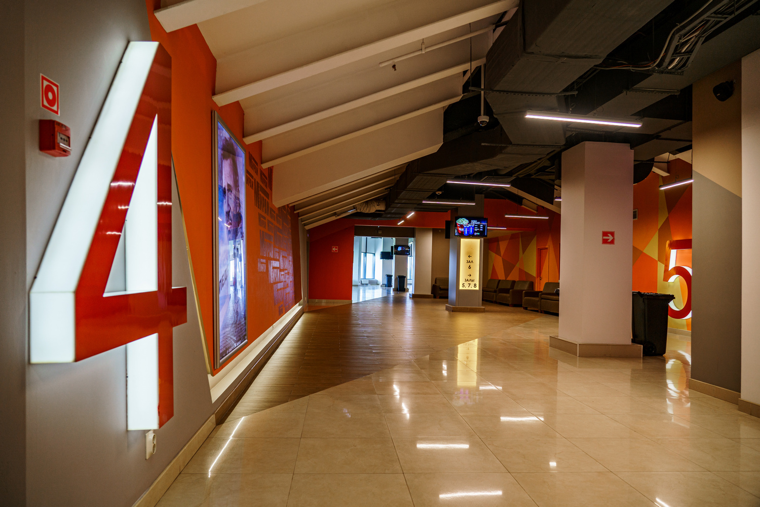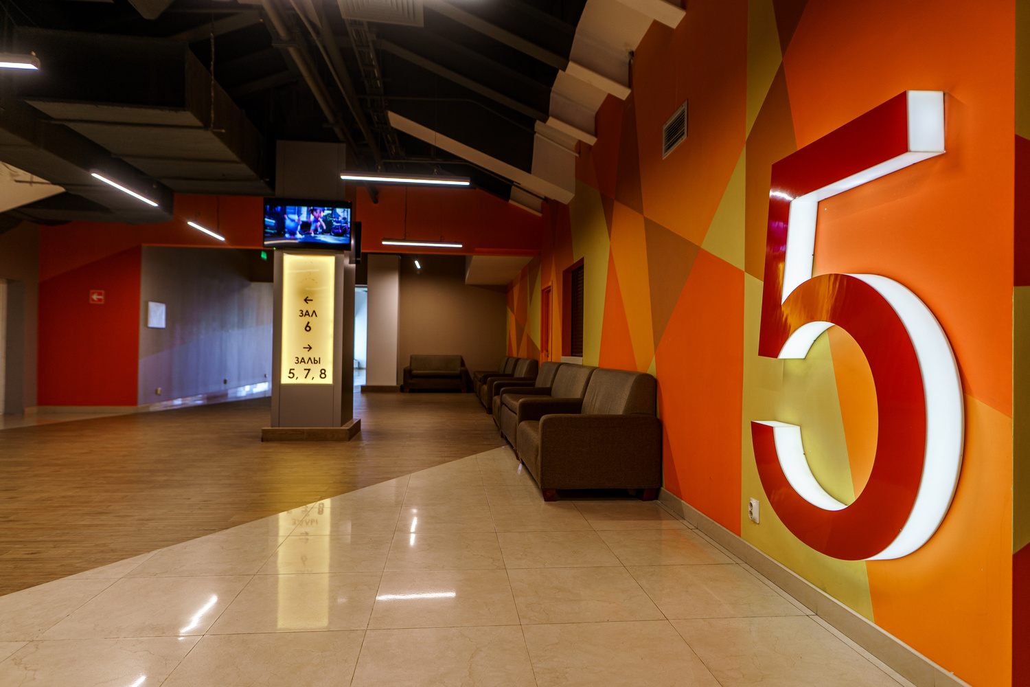 - Кинотеатр находится внутри семейного пятиэтажного торгового центра, общей площадью 88 000 м2.