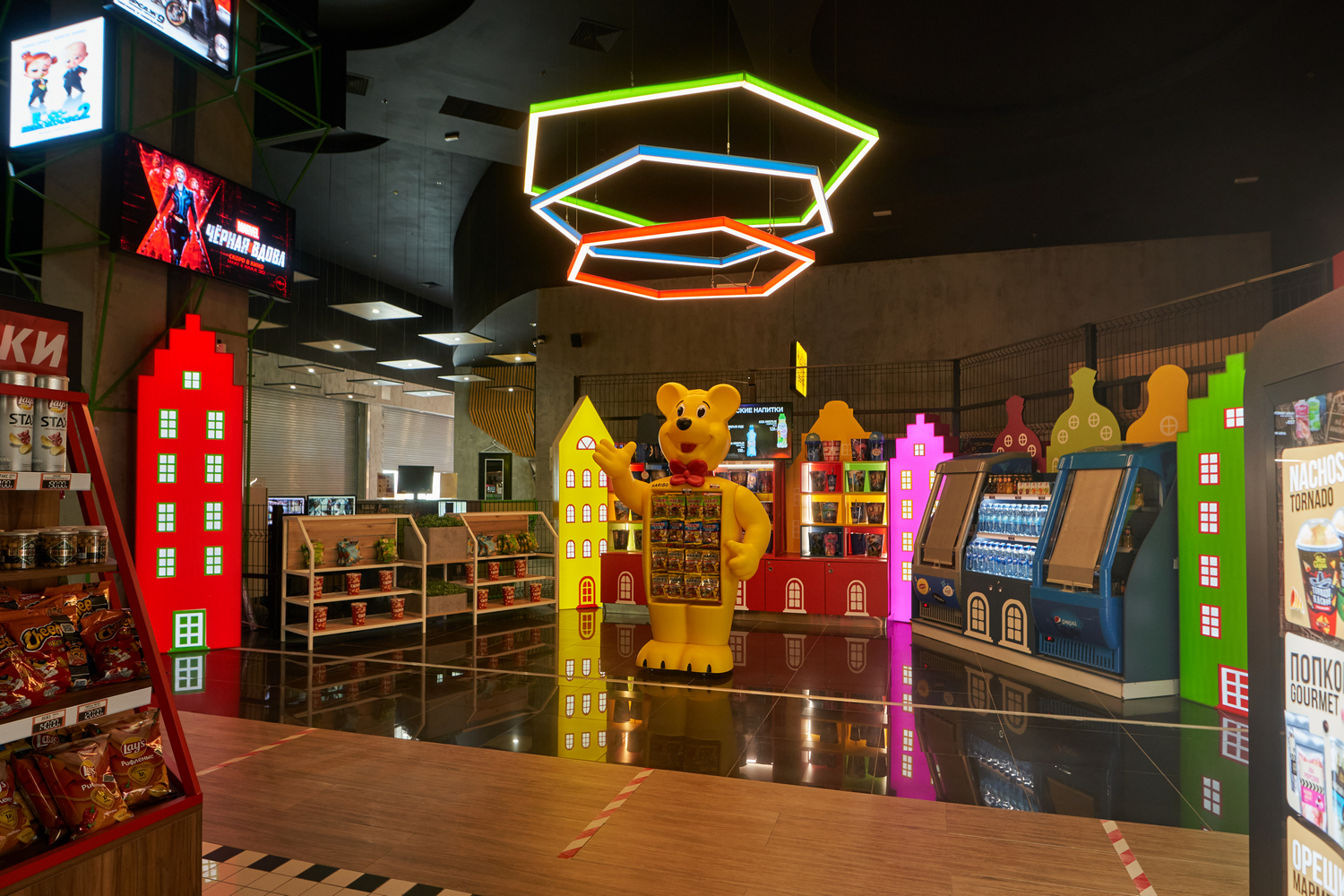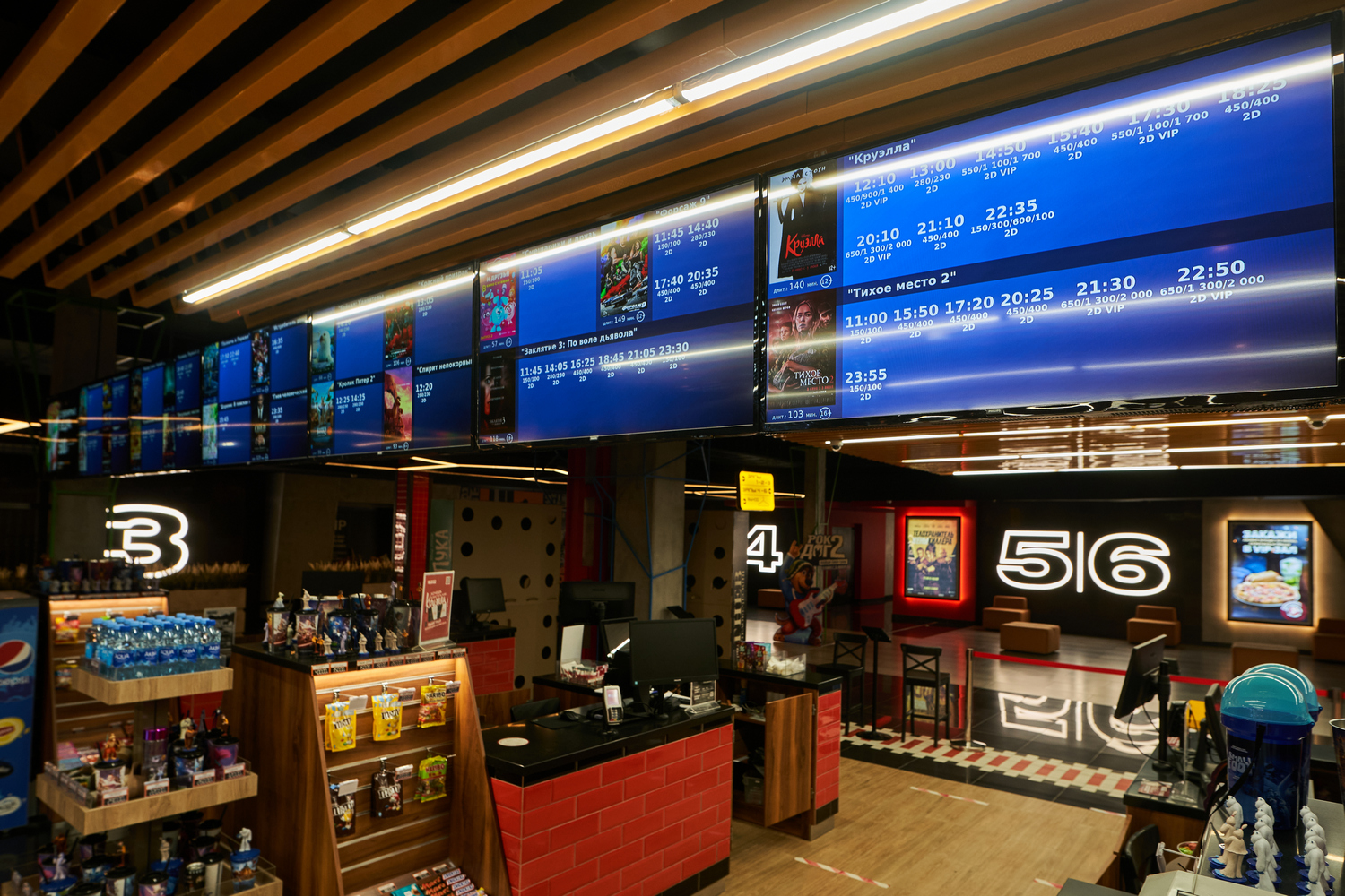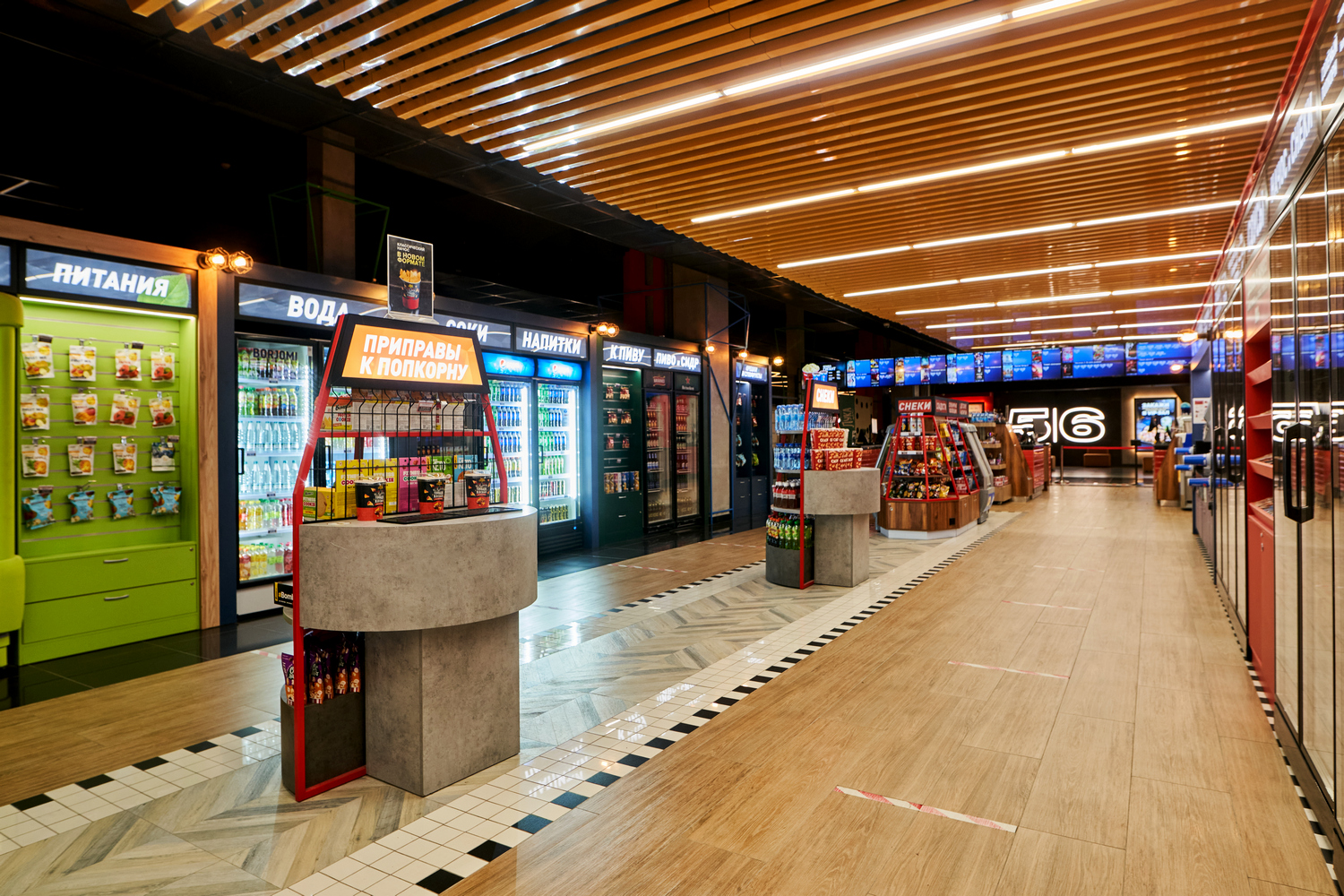 более 6 видов попкорна | разнообразные напитки | большой ассортимент закусок