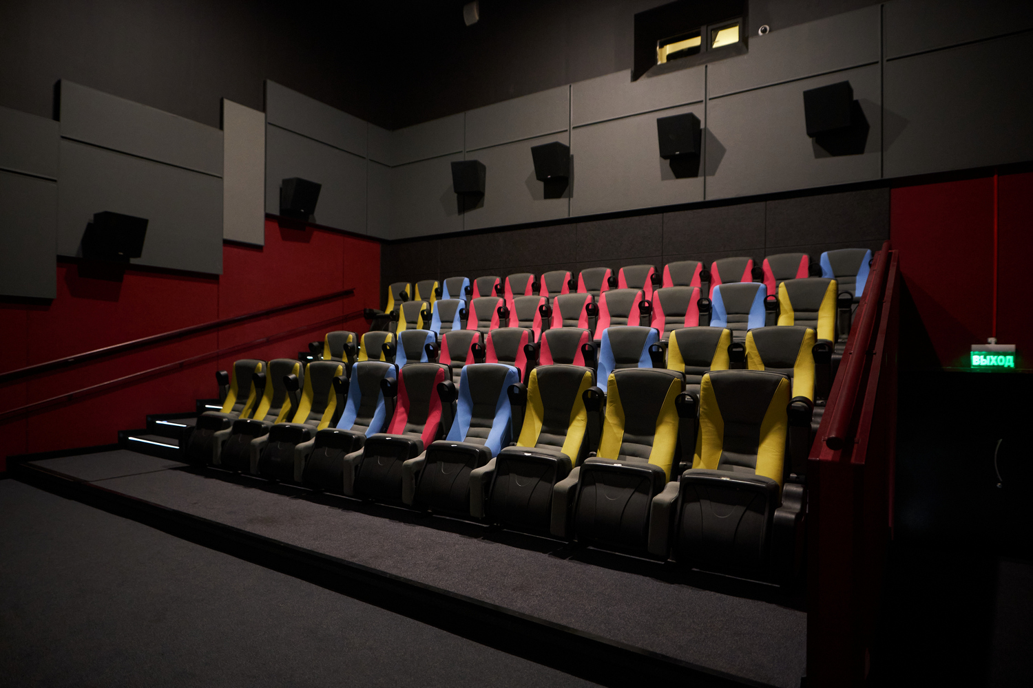 9 зал – 39 кресел разных ярких веселых цветов